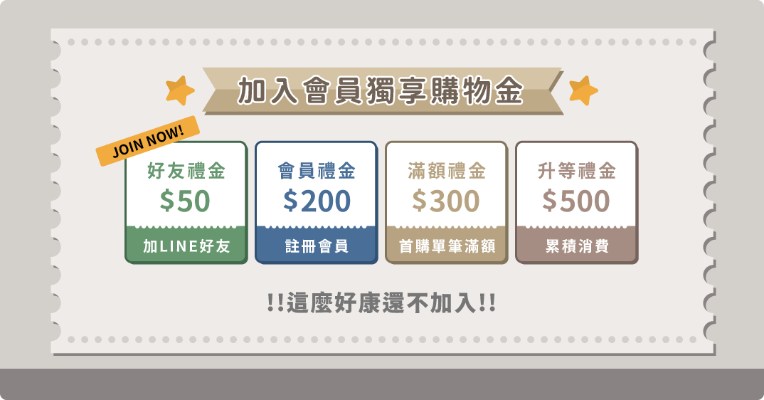 B.會員禮金:註冊會員 >加入官網會員並通過審核者 (可享有折價券200元)